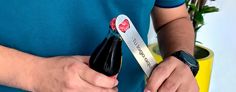 Para un estilo más moderno y duradero, nuestros destapadores metálicos son una excelente opción. Disponemos de destapadores metálicos con imán en la parte trasera, ideales para adherirse a superficies metálicas, como refrigeradores. También ofrecemos destapadores metálicos en diferentes formas y diseños, garantizando una apertura fácil y eficiente de las botellas, mientras promocionas tu marca con estilo.