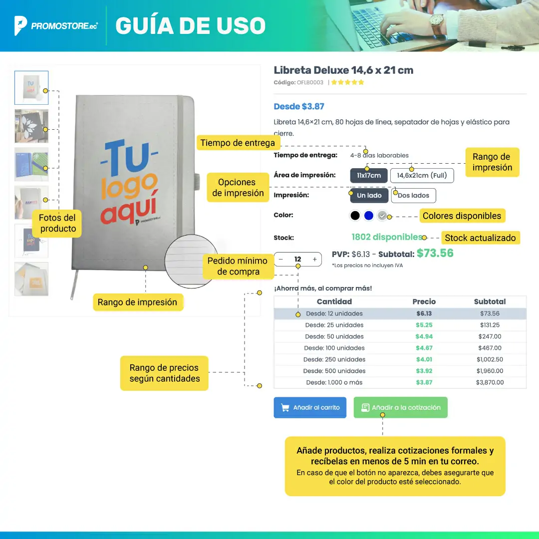 30Ago2021-08-30 Guía de uso General En Promostore.ec te facilitamos la forma de cotizar los mejores artículos publicitarios. Publicaciones relacionadas:Branding: beneficios de un promocionalMaterial para campañas publicitariasMerchandising para Hoteles: Creando Experiencias Memorables para tus Huéspedes