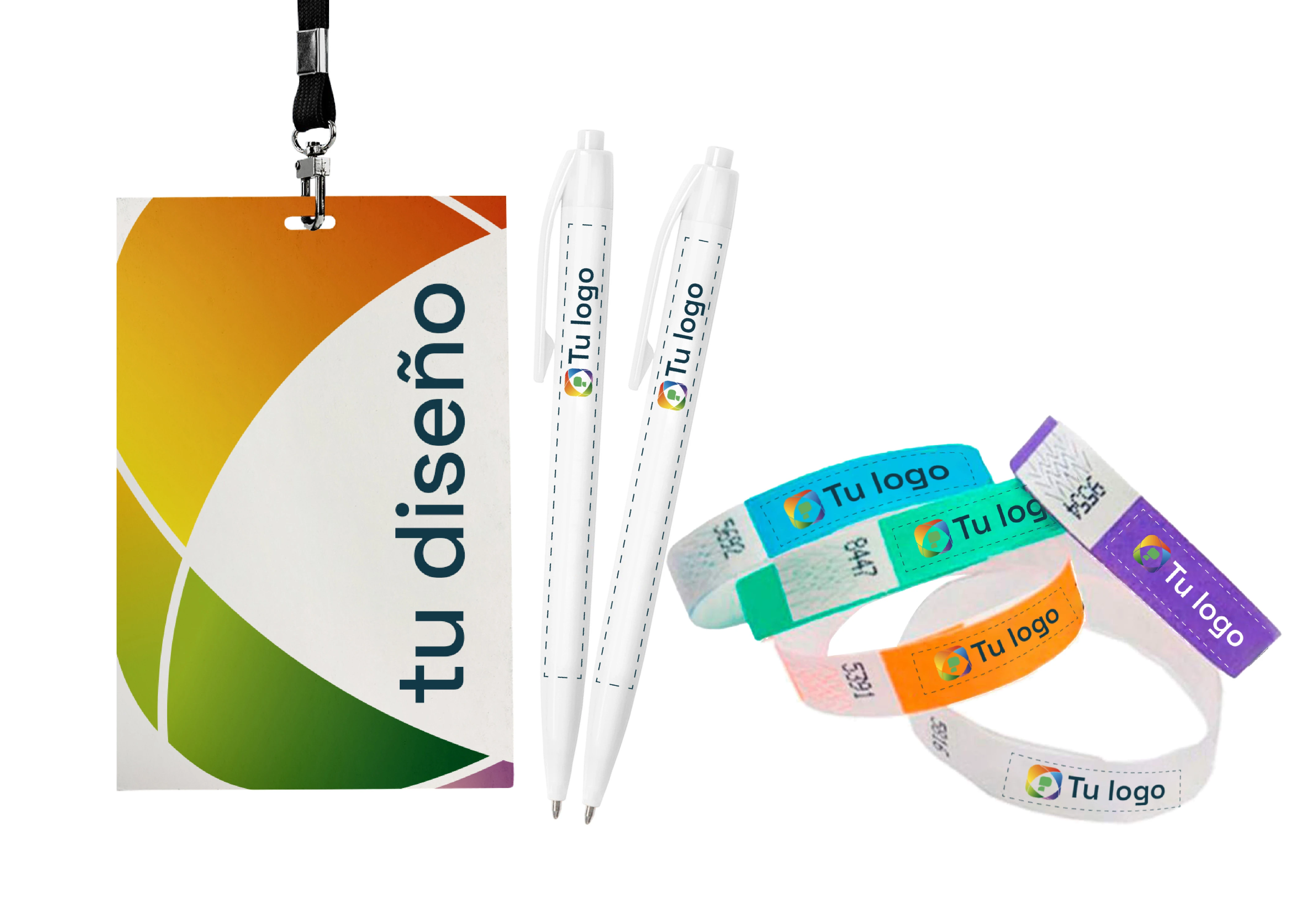 Lanyards o Colgantes: Proporcionan una solución práctica para llevar credenciales e identificaciones en eventos. Facilitan la visibilidad de los participantes y aseguran una circulación organizada además de promocionar tu marca.
