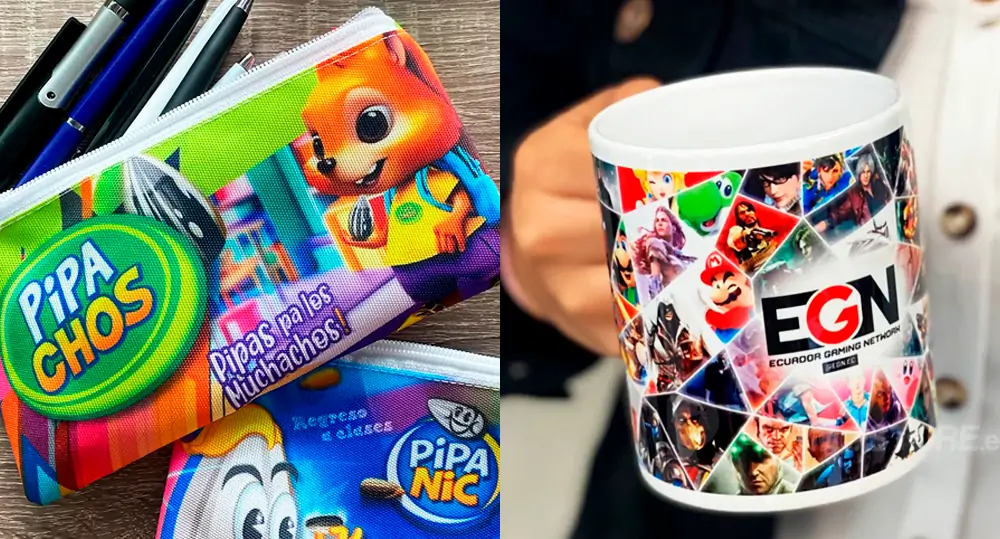 Sublimación: es una técnica de impresión que utiliza tinta para transferir diseños a un material a través del calor y la presión. Es una técnica de impresión popular en la industria de la moda y la decoración del hogar, ya que permite imprimir diseños a todo color y con gran detalle. solemos usarla en tazas de cerámica, mochilas a full color y camisetas a full color.